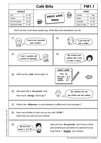 Meal deals worksheet 3 Functional Skills Progress Maths Level 1 to Level 2 978 1 4085 1577 8 Full contents listing Mapping document Measure shape and space focusing on problem solving. The pages are clearly designed with illustrations suitable for use with older teenagers. Use worksheets revision cards test papers and quizzes etc.